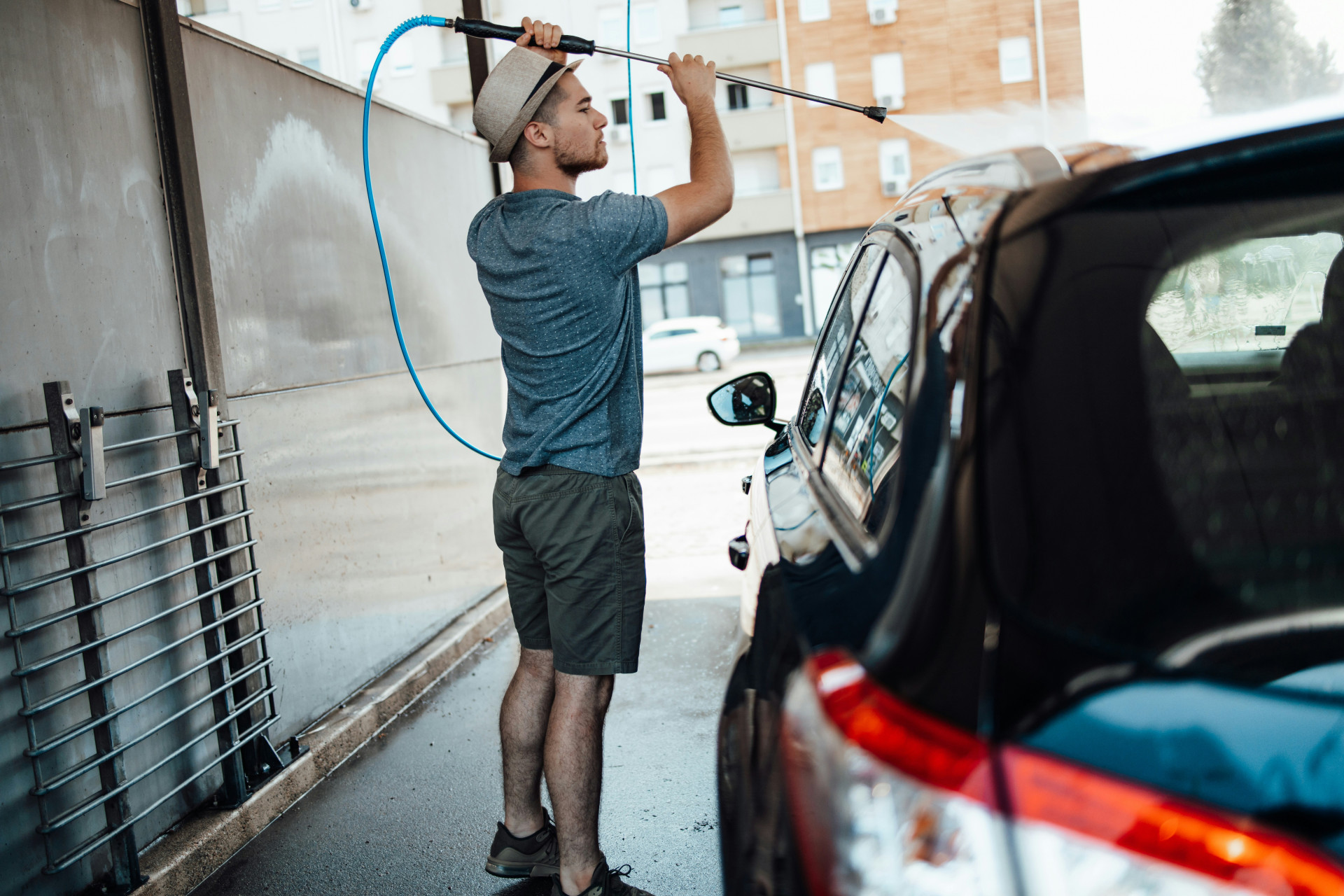 Kan jeg bruke høytrykksspyler på bilen?
